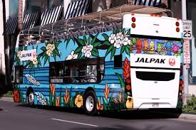 Caddelerde sürekli sağı solu açık, püfür püfür, dışı çeşitli Hawaii desenlerini yansıtan, rengarenk tur otobüsleri dolaşıyor.